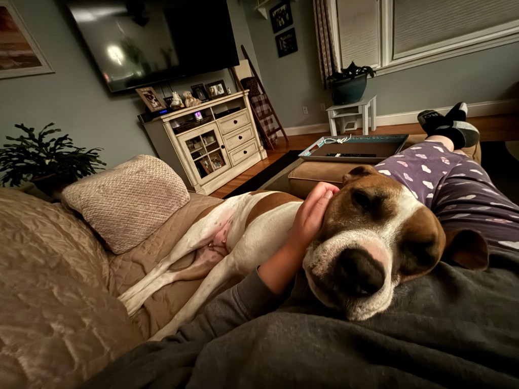 We are so luck to have found Joanie to watch our dog while we were out of town for a week. She was so nice when we met her and sent us a few sweet pictures of our pup while we were away. When we dropped our dog off he had a hot spot that we were so worried would be worse when we picked him up, but it was actually better! I know that he felt relaxed and they took great care of him! –– Jess L.